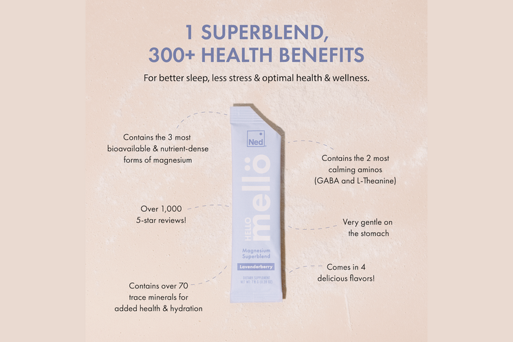 mellö is a powerful magnesium powder supplement for sleep, headaches, cramps, mood, memory, brain function, stress response, energy, and nerve and muscle health. mellö sustains your entire body with a proprietary superblend of 3 chelated magnesium forms, L-theanine, GABA, and over 70 trace minerals, uniquely formulated for whole-body—and brain — absorption. Click here to shop our mellö Magnesium 30-pack.